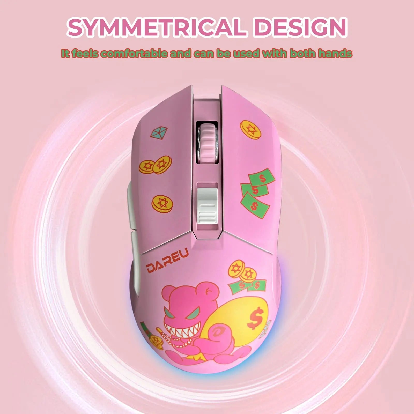 DAREU Dual Modes Gamer Mouse RGB 2.4G Wireless Wired Gaming Mice Built-in 930mAh Recharging Battery for PC Laptop